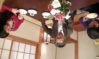 Japanese couple talk to Creampie Bang the wife while husband have to watch