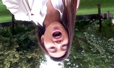 Asian beauty spreads her great gams for a massive love tool